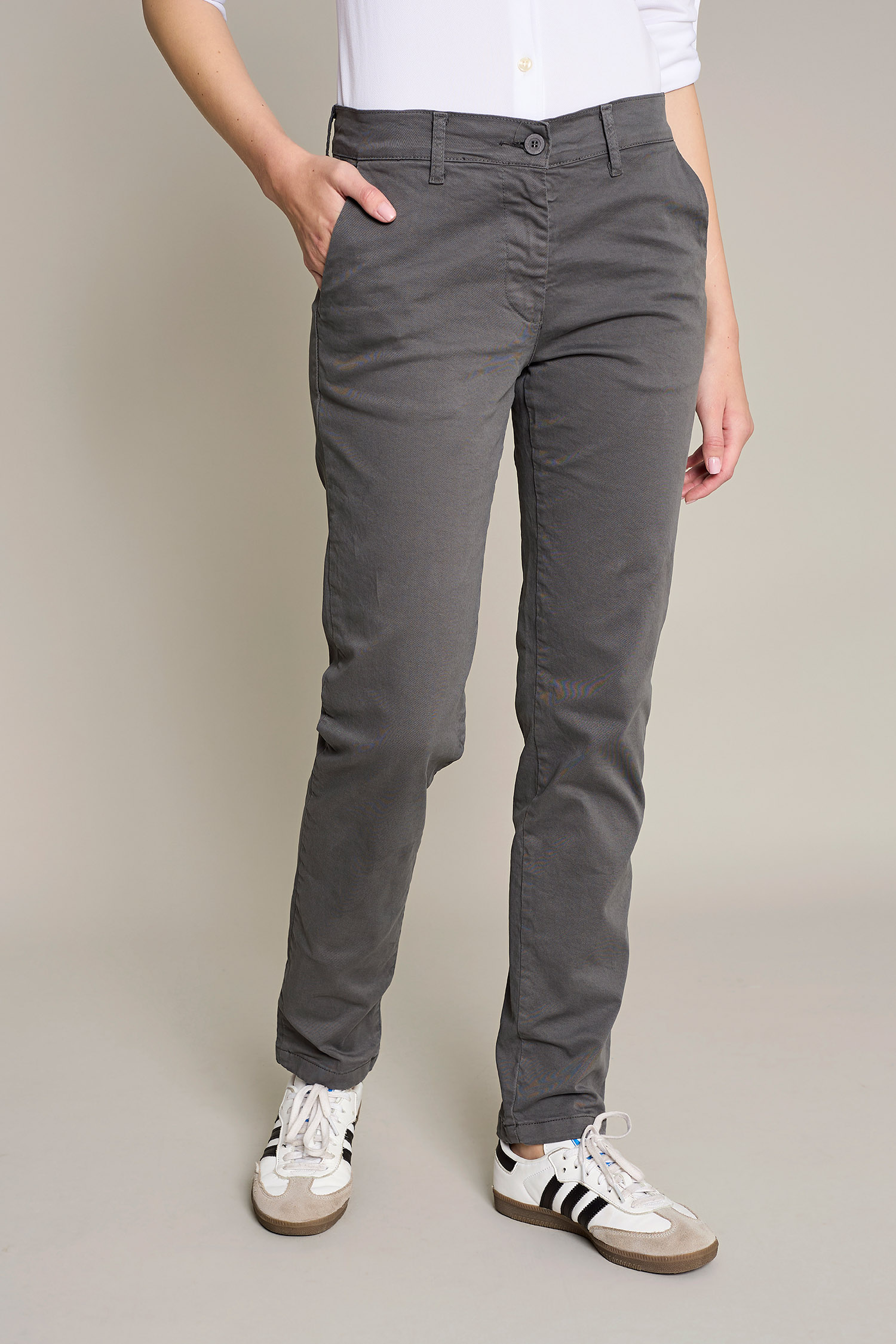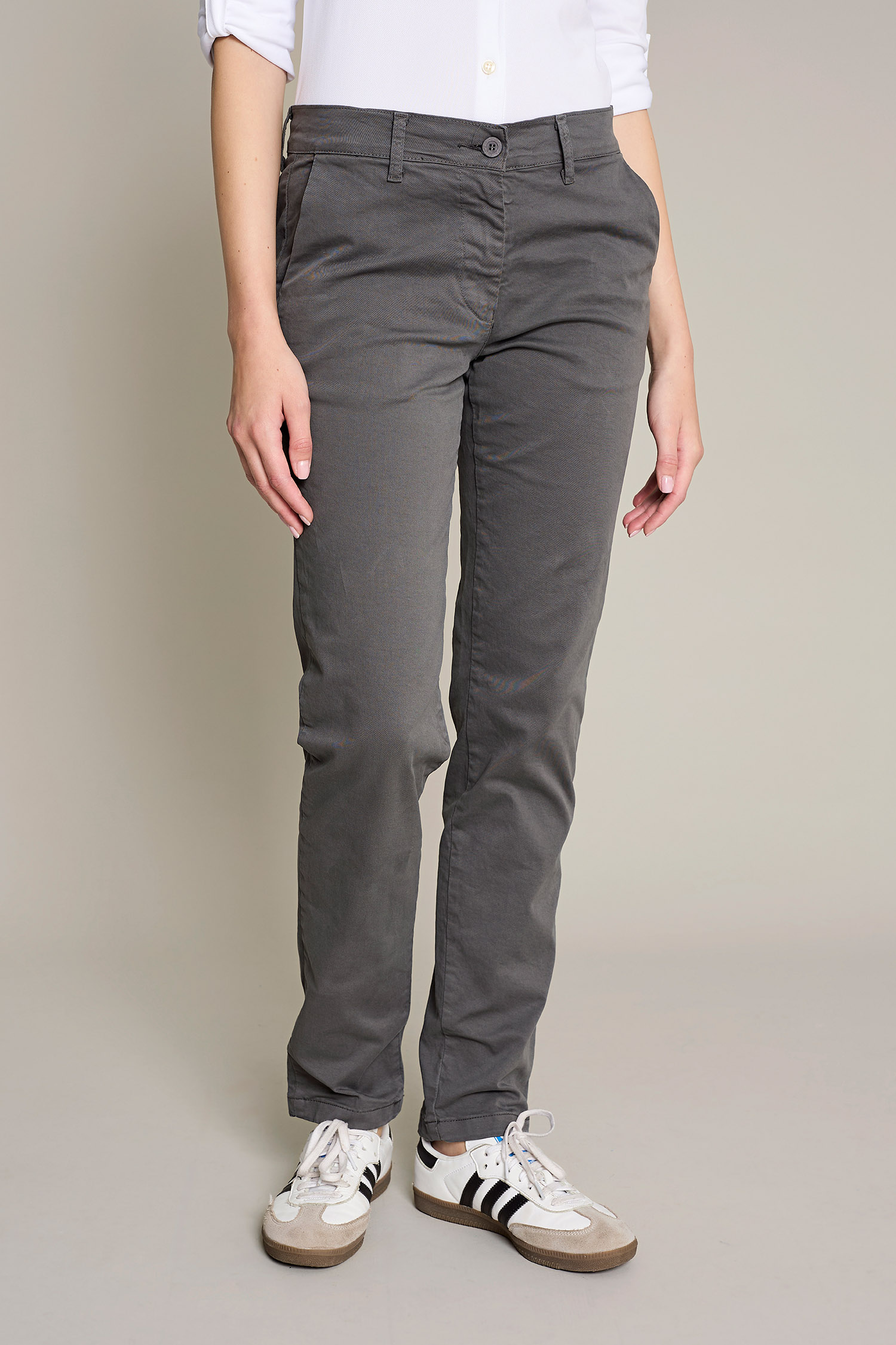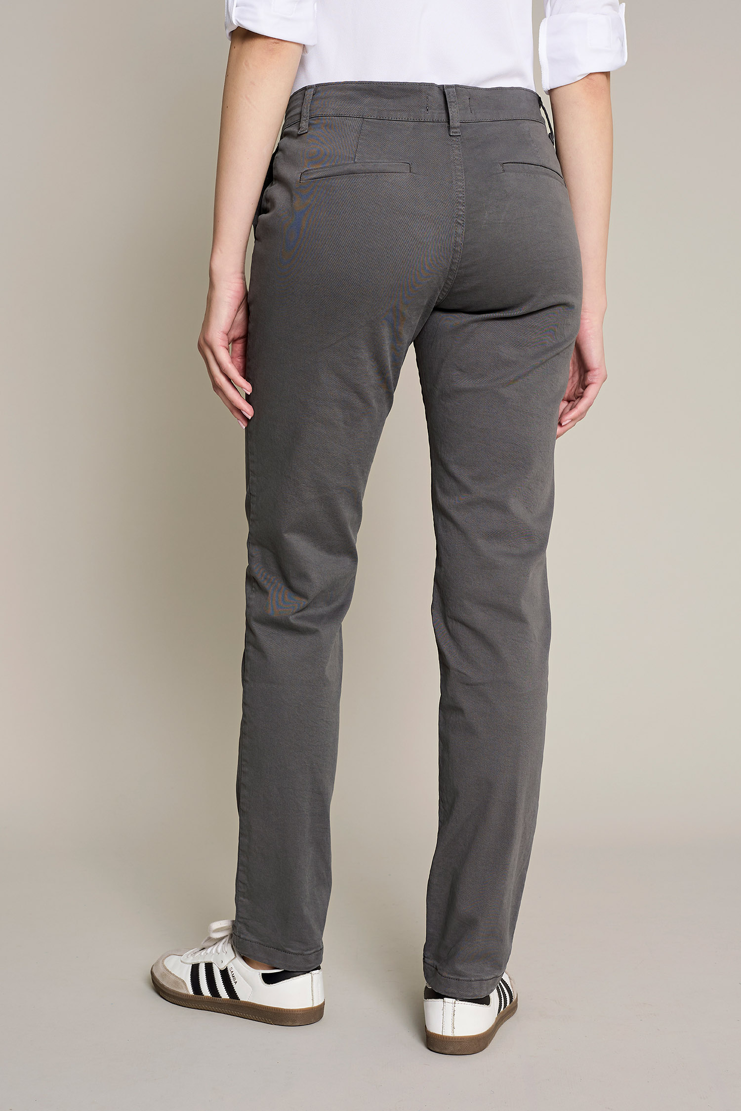 Women's chino pants in washed gray cotton for maximum comfort and style for work