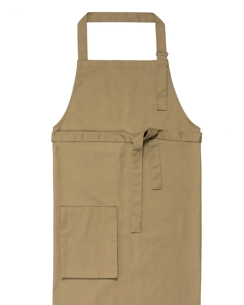Unisex beige apron with adjustable buckle, offers comfort and style in work environments