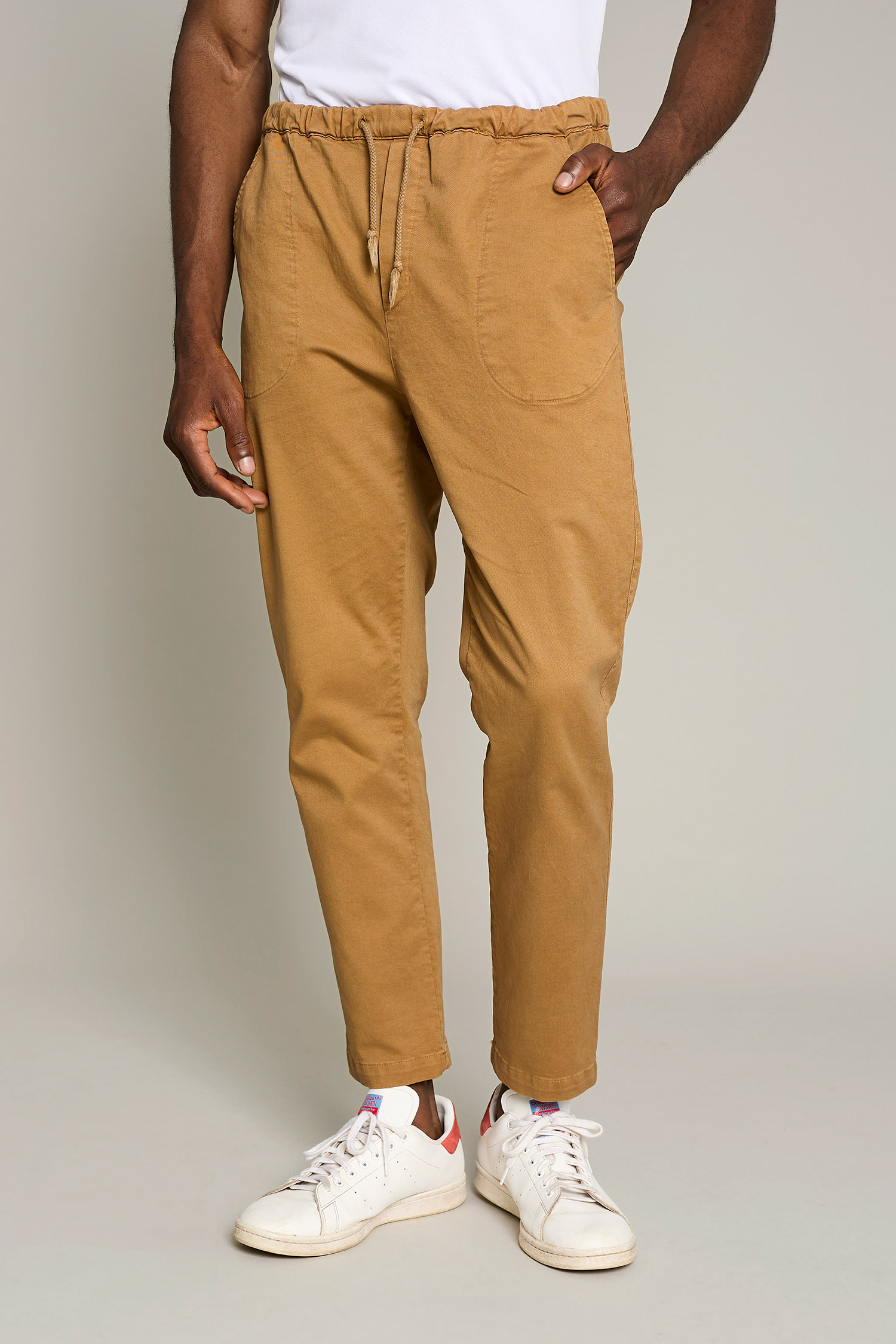 Unisex Mikonos trousers in camel with organic fabric, offering comfort, work style and sustainability.